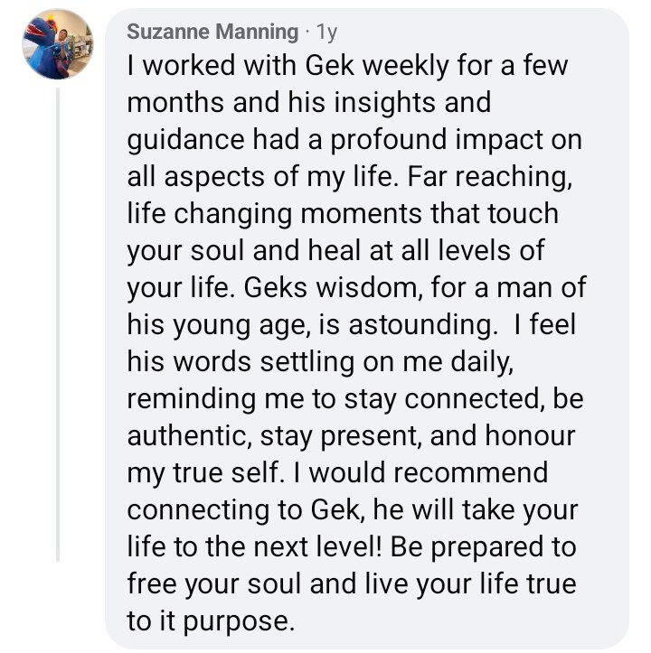 "GEK is an amazing healer. He helped me release energy blocks I've carried for years. Now, I feel fulfilled and happy. If you need help, please reach out to Gek."