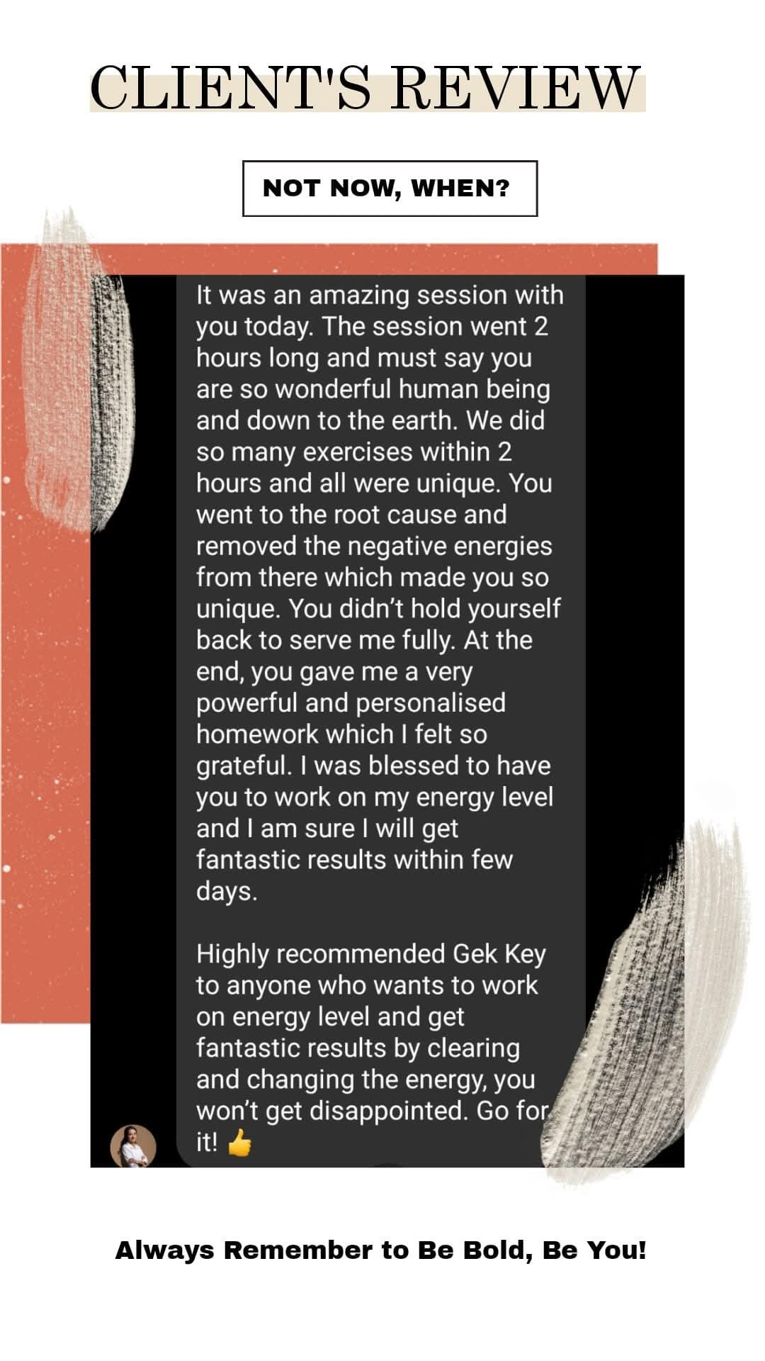 "I'm from the US, I just want to say that GEK is super powerful and super gifted in what he does. I'm sitting in the place of gratitude and peace and love and happiness and I feel so much release and so clear."